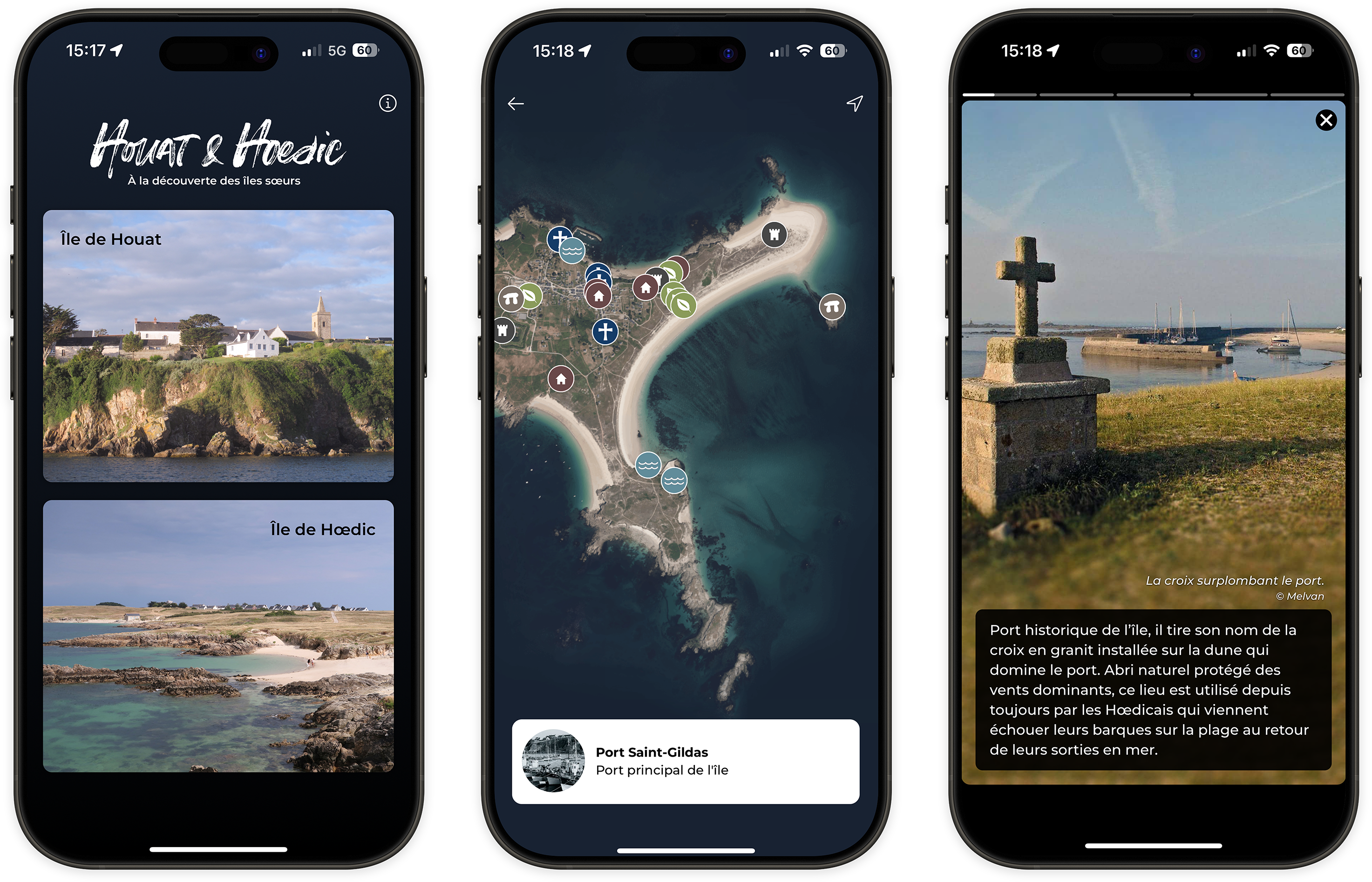 Le contenu a été réalisé pour les communes de Houat et Hœdic en collaboration avec l’association Melvan, reconnue pour son travail de médiation culturelle et patrimoniale.